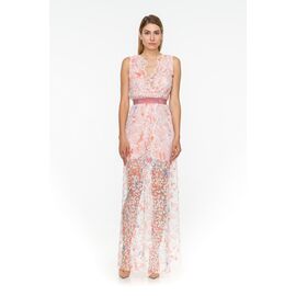 Платье макси из ткани гофре с оригинальным декольте и открытой спиной