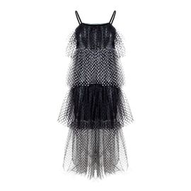 Комбинированное платье миди с рукавами из ткани, расшитой пайетками